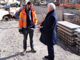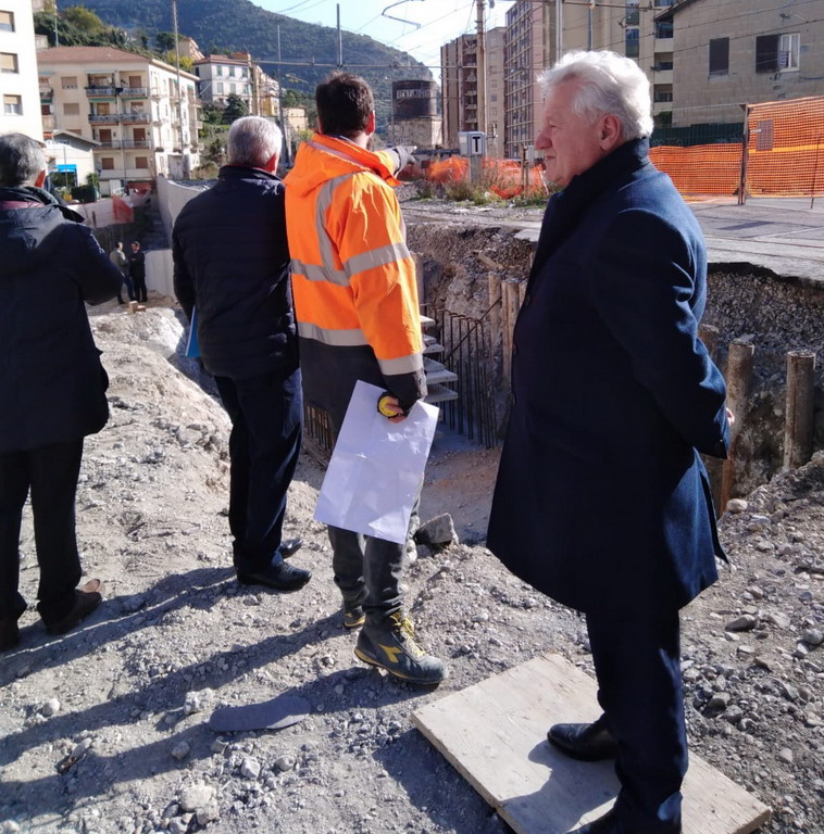 Sopralluogo del Sindaco di Ventimiglia, Gaetano Scullino, questa mattina al costruendo sottopasso ferroviario di Via Tenda. Era accompagnato dal dirigente dell’ufficio tecnico e dal comandante della polizia locale.