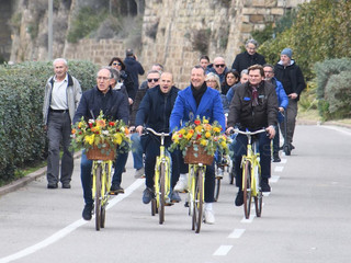 Arrivati a La Vesca in bicicletta partendo dal Sud Est, la 'carovana' del Festival si è intrattenuta anche con i molti curiosi presenti per poi piantare simbolicamente i primi due alberi del piccolo bosco in riva al mare dedicato alla storia della kermesse.