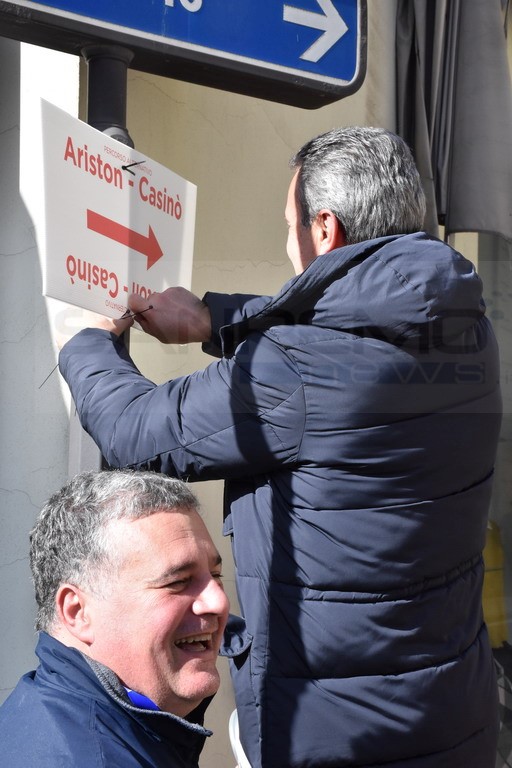 Sono stati ‘colti sul fatto’ dal nostro obiettivo ed hanno confermato di aver deciso di mettersi in prima persona ad installare i cartelli, per evitare di chiamare gli addetti del Comune, impegnati anche loro in altri lavori. Un ulteriore modo per mettersi al servizio della città in una giornata importante che dà il via al Festival 2020.