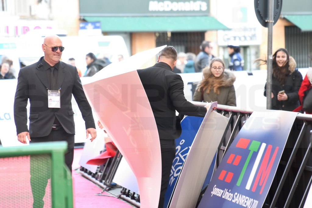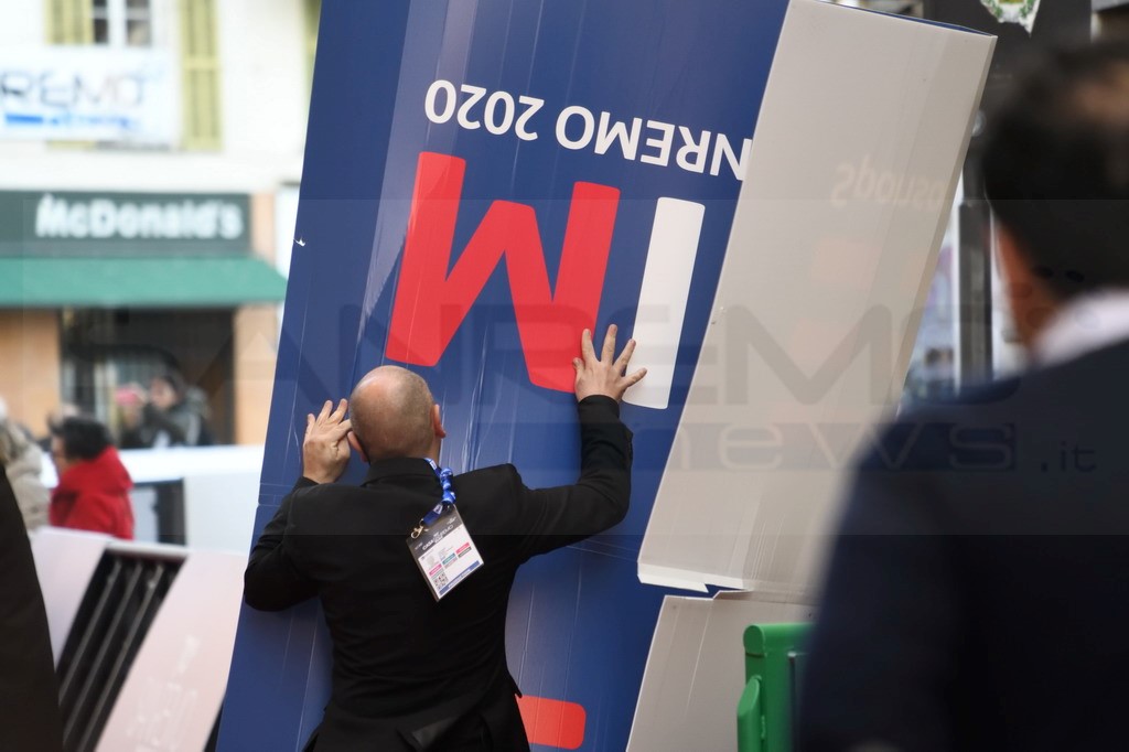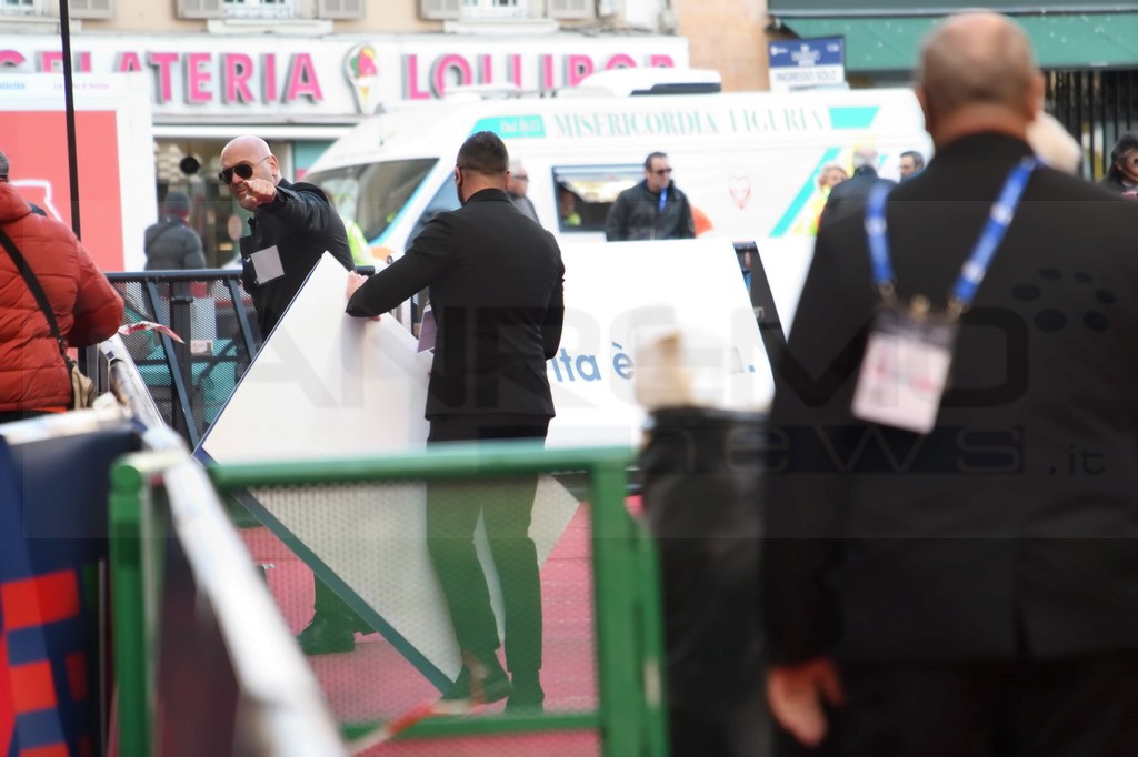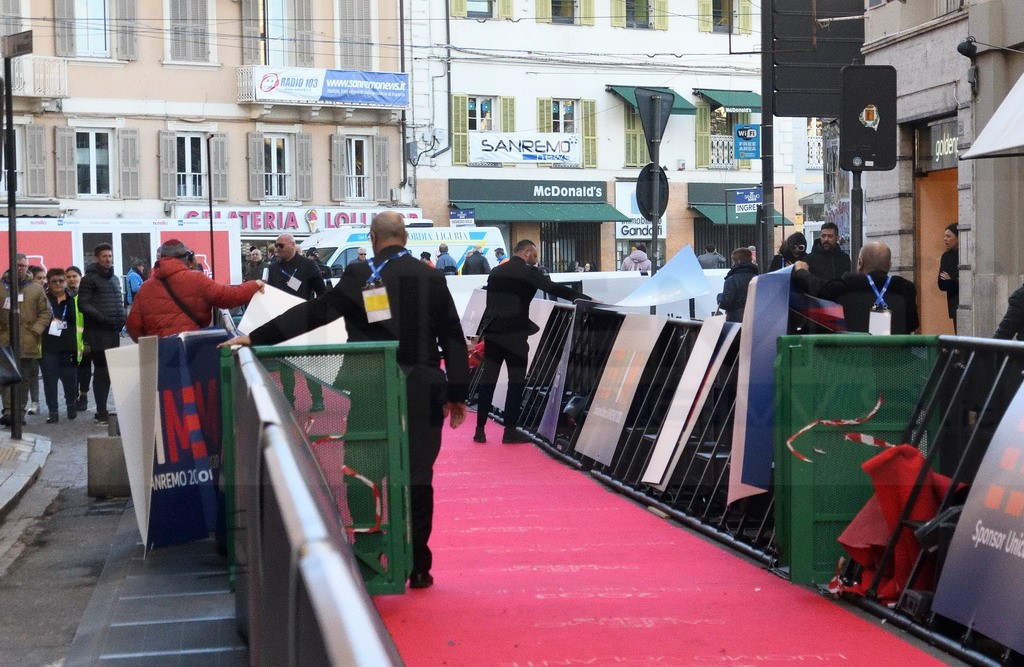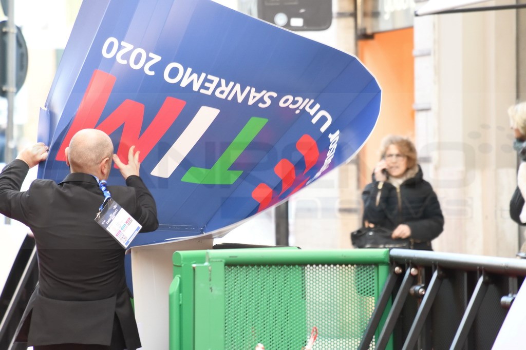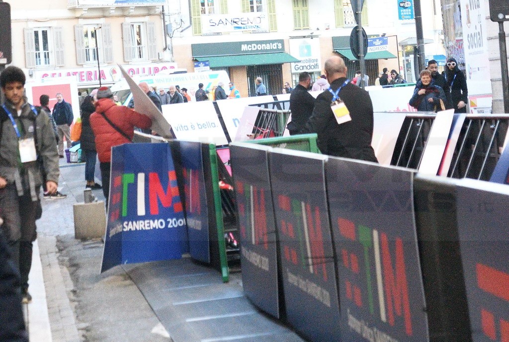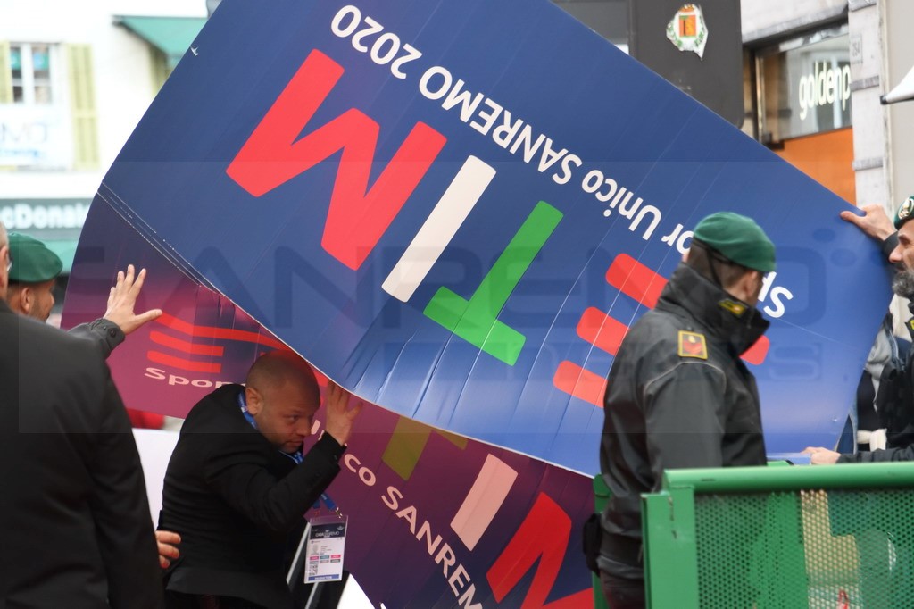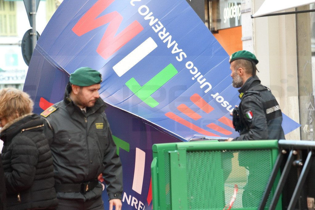 Sanremo: 'volano' i cartelli pubblicitari attorno al 'Red Carpet', qualche momento di paura in via Matteotti (Foto)