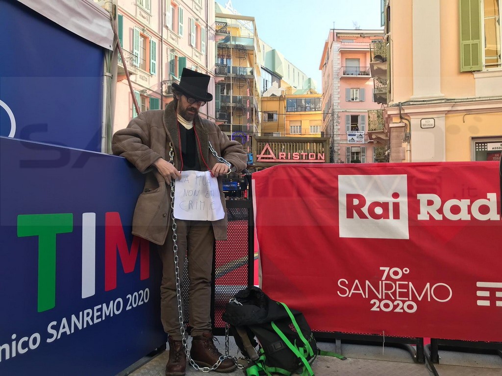 Per segnalare questa situazione all'opinione pubblica, oltre che a protestare contro la criminalizzazione degli artisti in una città come Sanremo che si definisce "la città della musica", Marco Fusi ha deciso di incatenarsi di fronte al teatro Ariston, mettendo in atto uno sciopero della fame e della sete che proseguirà ad oltranza fino alla revoca della sanzione da parte del Sindaco di Sanremo. "Ho cercato in tutti i modi un dialogo con le autorità - ha dichiarato Fusi - ma di fronte alla sordità delle istituzioni sono stato costretto a questa forma estrema di protesta non certo nei confronti del Festival, ma contro l'ipocrisia di una cultura istituzionale che da un lato criminalizza l'arte e dall'altro la usa per promuovere una volta volta all'anno Sanremo come città della musica. Temo che il mio caso dimostri quale sia la reale sensibilità dei politici nei confronti della creatività e della bellezza, una volta spenti i riflettori del Festival”.
