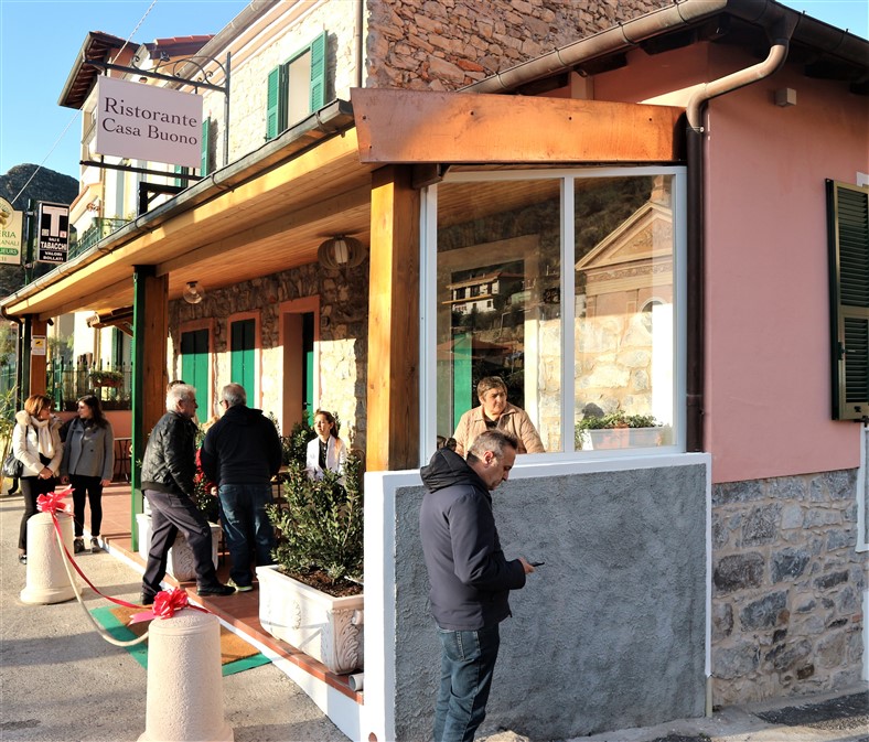 All’inaugurazione oggi sono intervenuti molti amici e soprattutto molti chef della zona. Una piccola festa con la benedizione del parroco che ha preceduto il taglio del nastro con la presenza del sindaco di Ventimiglia, Gaetano Scullino. Per informazioni e prenotazioni telefonare al numero 0184.1760006 mail:info@ristorantecasabuono.com
