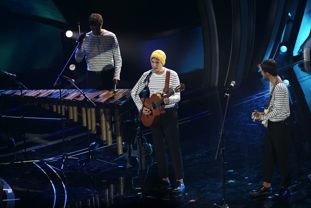 Tiratissima la prima sfida che ha visto Tecla Insolia con “8 marzo” vincere con il 50,6% della giuria demoscopica contro gli Eugenio in via di Gioia con “Tzunami”.