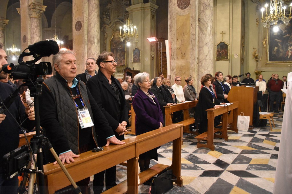 Santa Messa per pochi intimi, questa sera alla Chiesa degli Angeli di piazza Colombo a Sanremo, organizzata per gli artisti e gli addetti ai lavori del Festival di Sanremo.