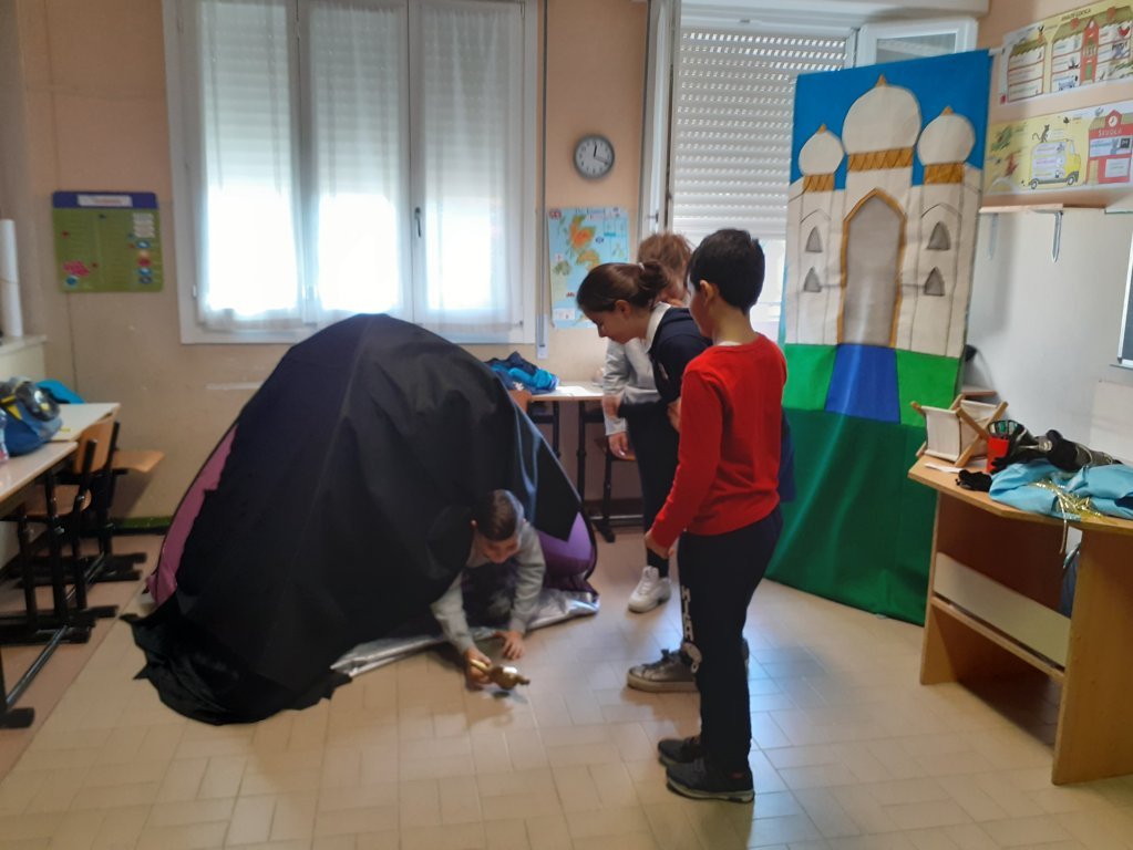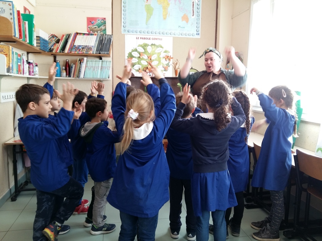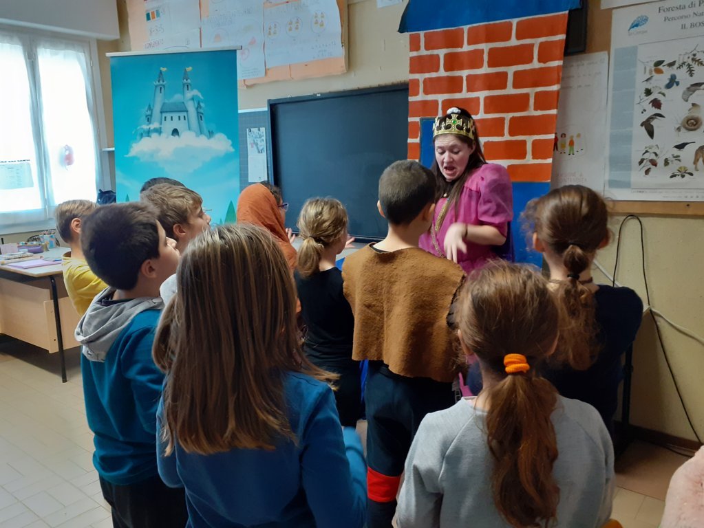 Per l’occasione le classi, sgombrate di banchi e sedie, sono diventate palcoscenici per piccoli attori in costume. A conclusione dell’attività le animatrici hanno coinvolto i bambini in divertenti giochi di movimento.