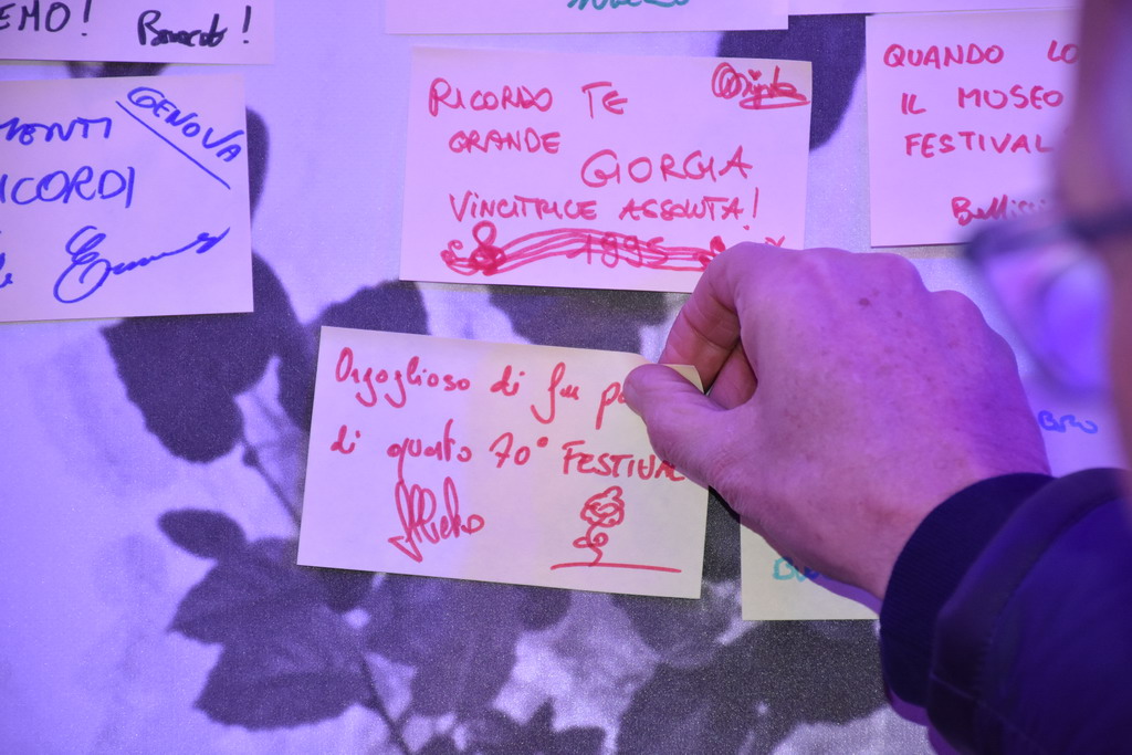 Alla fine sia Toti che Biancheri hanno lasciato il loro ‘post it’ nella stanza dei saluti. Per Toti “I ricordi sarebbero troppi, pensando al futuro. Buon Festival 2021’ mente, per Biancheri “Oroglioso di far parte di questo 70° Festival”.