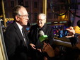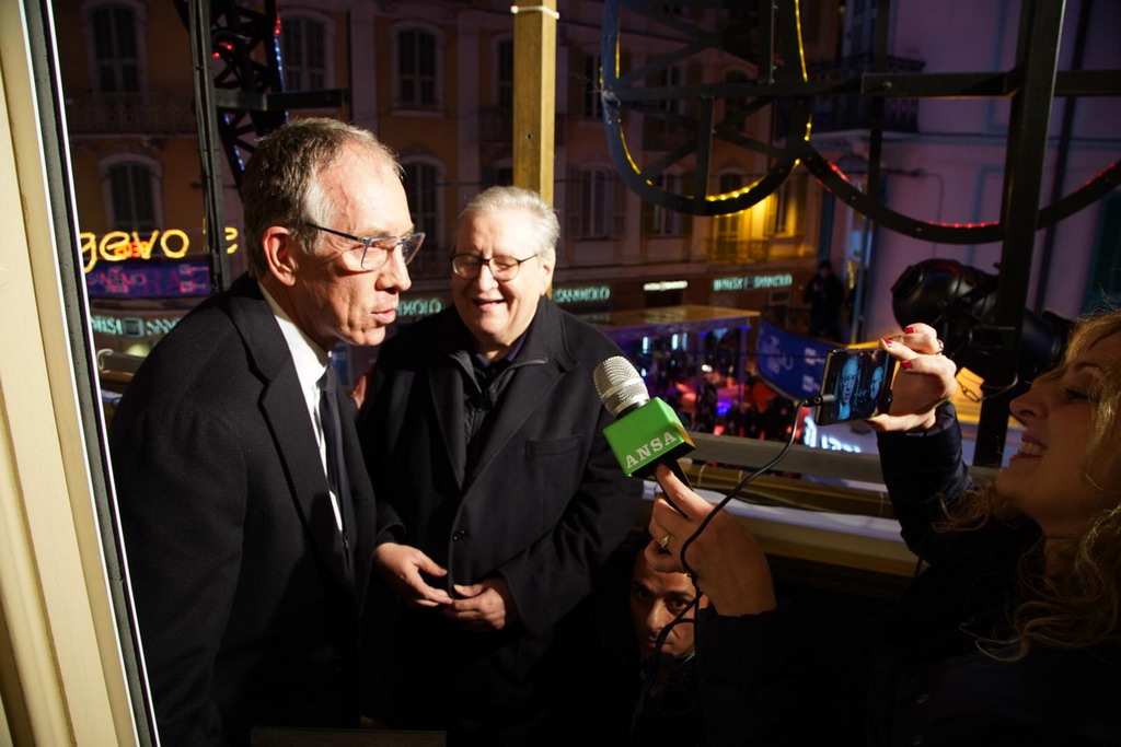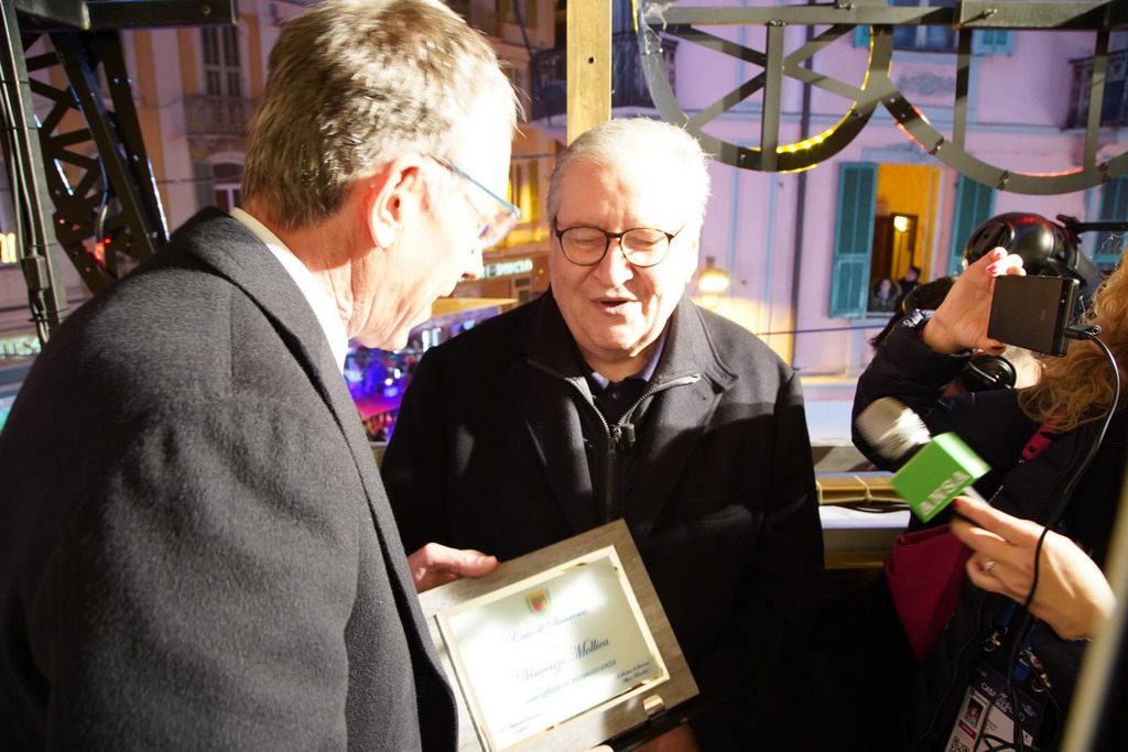 Appena terminato il collegamento con il Tg1, sul ‘leggendario’ terrazzino dell’Ariston il Sindaco di Sanremo, Alberto Biancheri, ha donato una targa a Vincenzo Mollica, giornalista della Rai che ha assolto ai suoi compiti per l’ultimo Festival della Canzone della sua carriera per la Rai.