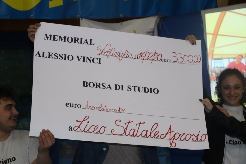 Ogni associazione ha messo tutto il proprio impegno per partecipare ed il risultato ottenuto è stato straordinario, con bambini ed adulti in campo e sulle tribune che si sono divertiti lanciando un messaggio unitario per ricordare Alessio ed unire sempre affetto e sentimenti. Alla fine della giornata il risultato del memorial è stato al di sopra delle aspettative: 3.300 euro raccolti dalla beneficenza di tutti i partecipanti. I soldi serviranno per donare una borsa di studio al Liceo Aprosio di Ventimiglia, in nome di Alessio Vinci.
