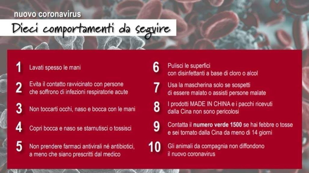 Sotto il decalogo del Ministero della Salute sui comportamenti da tenere.
