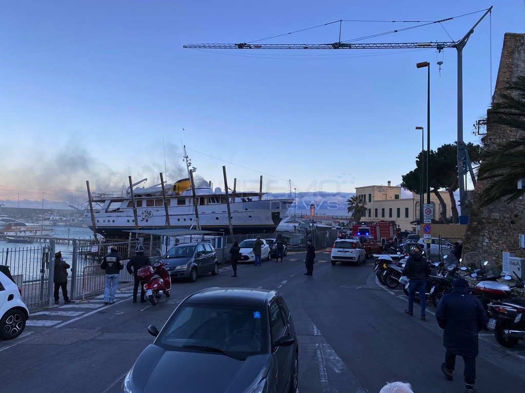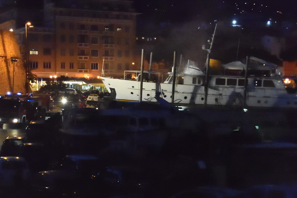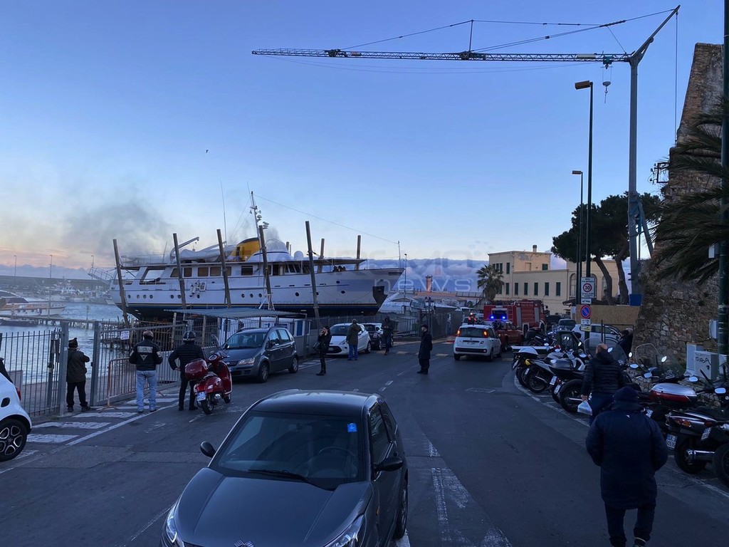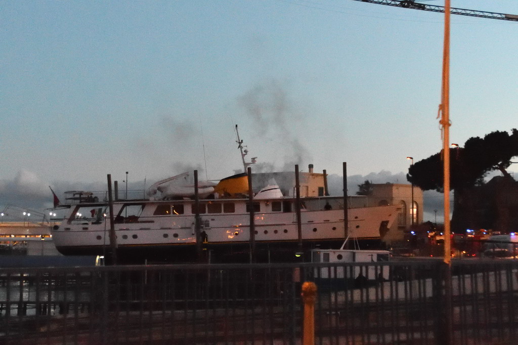 Sanremo: incendio su uno yacht in cantiere a Porto Vecchio, in azione Vigili del Fuoco e 118 (Foto)