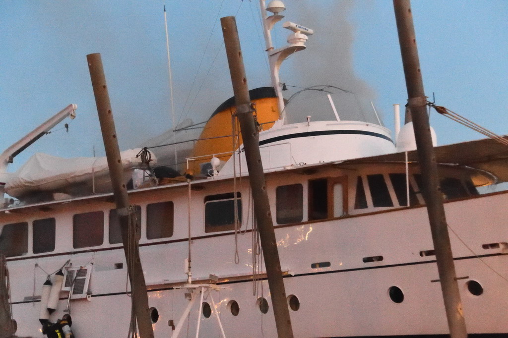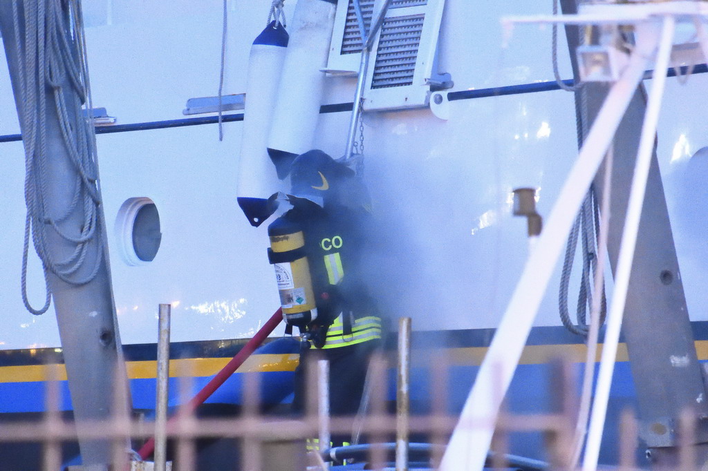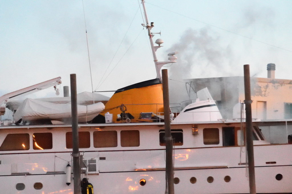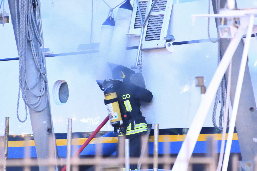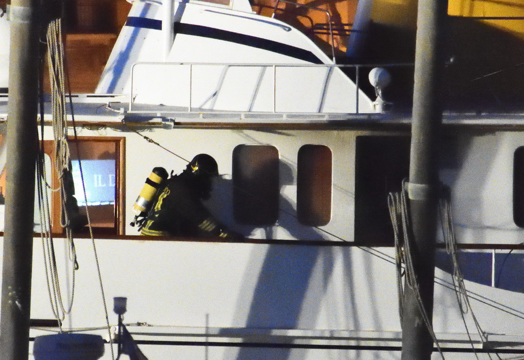 Sanremo: incendio su uno yacht in cantiere a Porto Vecchio, in azione Vigili del Fuoco e 118 (Foto)