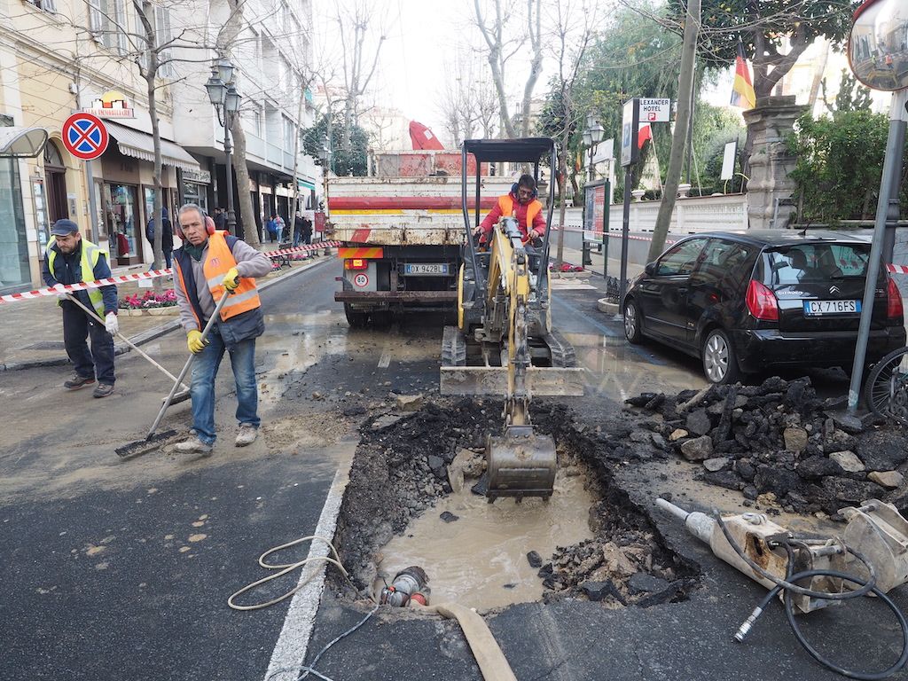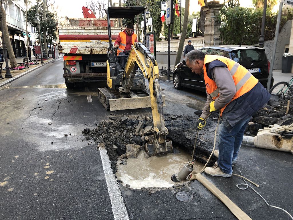 Sanremo: riparato il tubo di corso Garibaldi, l'acqua potabile sta tornando nelle case e nei negozi (Foto)
