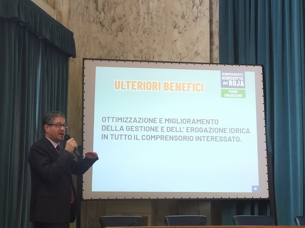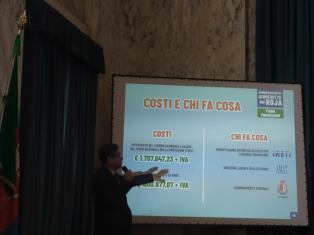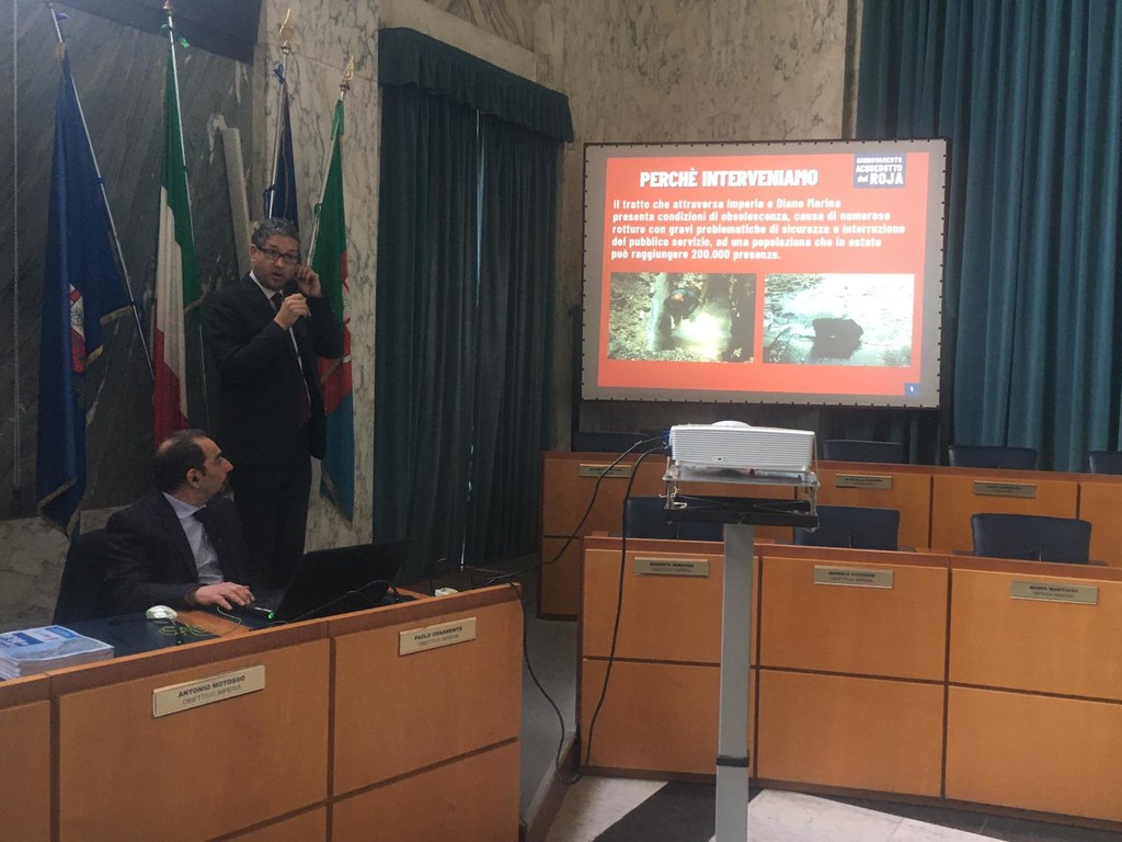 “Il problema complessivo di tutta la provincia di Imperia sull’acqua è enorme, perché è un territorio che ha acqua, ma non riesce a distribuirla. - ha spiegato Scajola - Quella che distribuisce costa troppo caro. Quindi il problema è intervenire sulle reti, sulle condutture di approvvigionamento, riuscendo nei tempi più brevi possibili a recuperare un periodo troppo lungo di inerzia. La parte relativa all’imperiese, e cioè dal Prino al dianese, ha una conduttura molto vecchia che si rompe troppo spesso, e crea nel periodo estivo di maggiore afflusso turistico e quindi di maggior necessità di approvvigionamento idrico, delle interruzioni che sono molto dannose per i nostri cittadini e per i nostri turisti. Ecco perché con delega come comune capofila, dei comuni del dianese, siamo partiti con una progettazione che faccia una nuova conduttura del Roja, che garantisca quindi un approvvigionamento sicuro. Ci siamo affidati ad Amat che ha fatto una buona progettazione divisa in lotti che partendo da Imperia debba arrivare fino ad Andora. La prima parte è quella relativa a Imperia e Diano Marina. Su questo percorso abbiamo ottenuto dalla Regione un primo finanziamento di due milioni importante. Siamo già nella fase di appalto, e quindi di inizio lavori. Poi ci sono gli altri punti che dobbiamo portare avanti e abbiamo chiesto a Ireti se può fare una anticipazione finanziaria, cioè anticipare ad Amat delle risorse economiche che potrebbero permetterci senza interruzione, di partire dal Prino e di fare un nuovo acquedotto fino a Diano Marina. Primo stralcio di un’opera che dovrà proseguire fino ad Andora, anche con la parte di collegamento fognizio tra Andora e Diano Marina, che oggi non c’è e non si può collegare al depuratore di Imperia. quindi un’opera complessa, difficile che non può essere affidata alle chiacchiere, ma ai fatti, e noi abbiamo il dovere di portare acqua, costi quel che costi”.