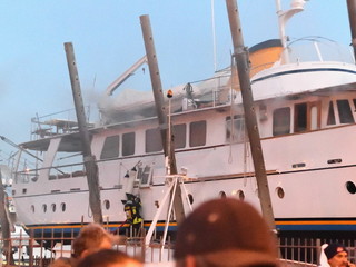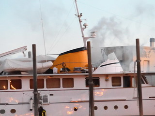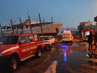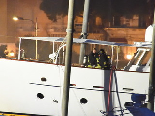 Sanremo: incendio su uno yacht in cantiere a Porto Vecchio, in azione Vigili del Fuoco e 118 (Foto)