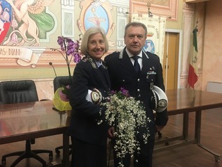 "Resterò per sempre vigile nel cuore": con queste parole Daniela Bozzano, comandante dei vigili urbani di Diano Marina, saluta i colleghi, amministratori e amici che l'hanno accompagnata nella sua lunga carriera. Oggi infatti, nella sala consiliare del Comune, si è svolta la cerimonia per il suo pensionamento arrivato dopo 33 anni e 8 mesi di servizio. "12 mila e 312 giorni" ci tiene a precisare la Bozzano che l'hanno vista essere, nel 1986, la prima comandante donna della Liguria e la terza in Italia. Durante l'incontro è stato proiettato un video con i momenti salienti della sua carriera; video realizzato da Francesca Novaro. Momenti che l'hanno vista in prima linea in molte emergenze come eventi climatici particolarmente critici, ma anche importanti appuntamenti culturali e sportivi avvenuti a Diano Marina.