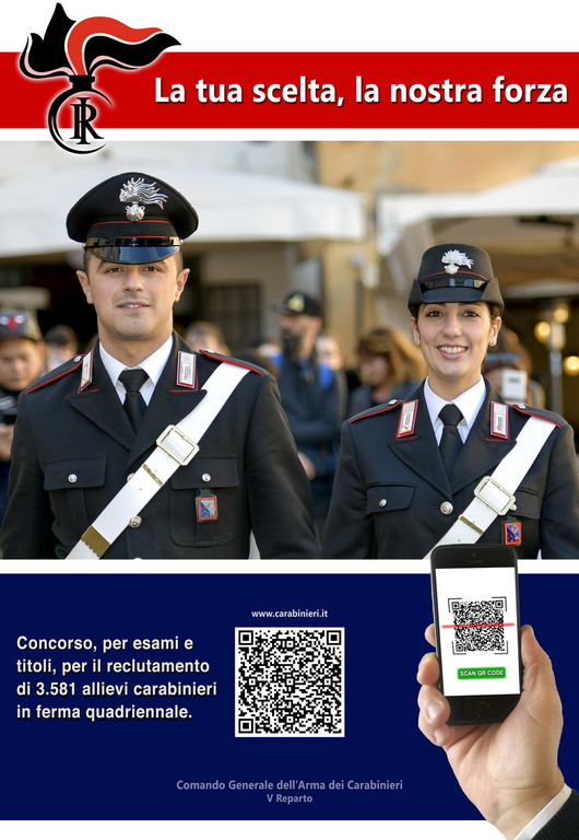 Pubblicato nella Gazzetta Ufficiale il bando di concorso per l’arruolamento di 3.581 allievi Carabinieri, dei quali 2.449 riservati ai volontari in servizio delle Forze Armate, 1.100 ai civili e 32 ai possessori di attestato di bilinguismo.