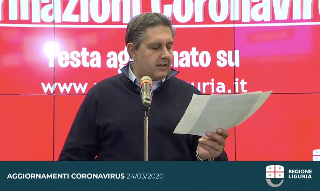 Per il Governatore Toti i dati odierni sono confortanti, ma non bisogna abbassare la guardia. "Il merito è delle misure di distanza sociale imposte e di chi ha rispettato le regole. L'epidemia non sta finendo, cresce meno rispetto al giorno precedente. C'è un rallentamento, ma non un'inversione di tendenza". Per quanto riguarda invece l'arrivo dei dispositivi di sicurezza e protezione "oggi c'è stata la consegna da parte delle Dogane di Genova di un carico sequestrato di dispositivi fp2, utili a gestire i casi positivi, ha dichiarato, dovrebbero arrivare 250 mila mascherine di questo tipo entro la fine della settimana, poi arriverà il primo milione di mascherine chirurgiche e anche altri invii dalla Cina che ci porteranno ad avere 750 mila mascherine fp2 in più e 4 milioni di chirurgiche entro tre settimane".