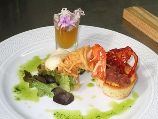 Proseguiamo il viaggio alla scoperta delle migliori ricette con i fiori eduli, dopo il calamaro e nasturzio della precedente puntata, oggi scopriamo la Gelatina di agrumi e fiori di Erba Cipollina con shabu di calamari spillo.