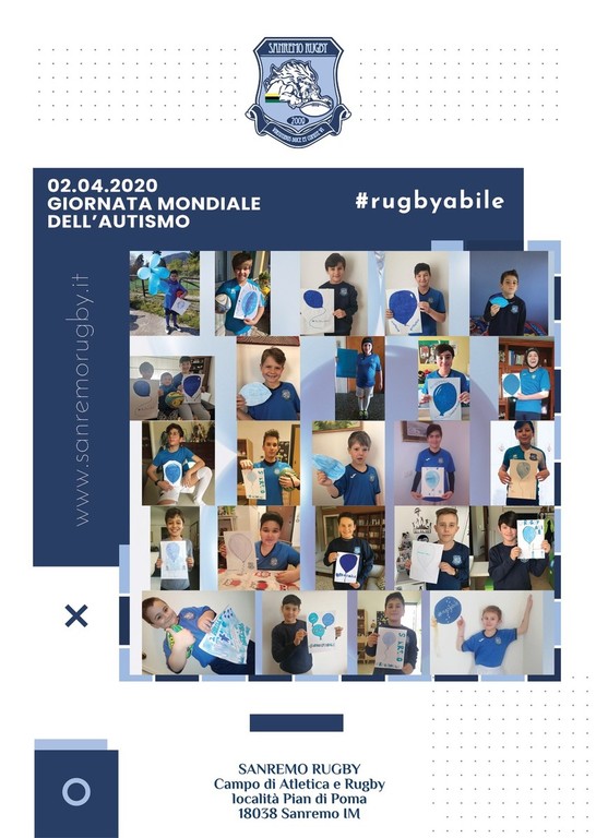 Tutte le squadre del “Sanremo Rugby”, in divisa e pronti come si fa per una partita, oggi si ritrovano schierati per lanciare insieme un pallone. Non sarà solo uno: tanti palloncini blu, qualcuno ovale, che riusciranno a far arrivare il loro messaggio: una maggiore consapevolezza sull'autismo. Nonostante la situazione legata al Coronavirus l'Associazione non vuole perdere l'occasione per sensibilizzare su una condizione che pone le famiglie a sfide complesse, ora più che mai.