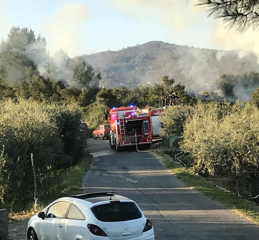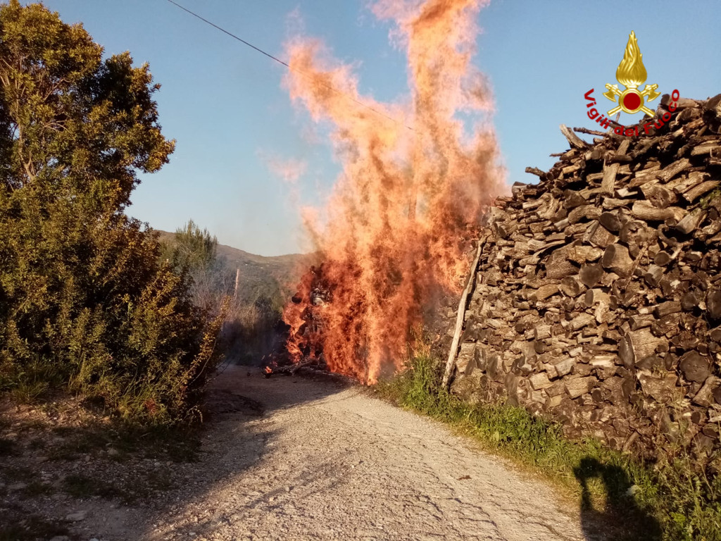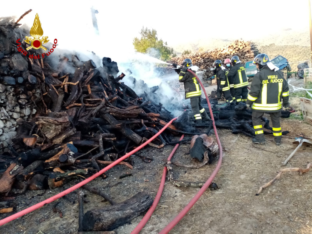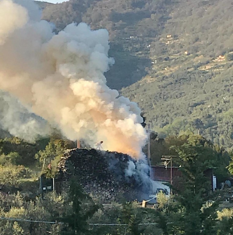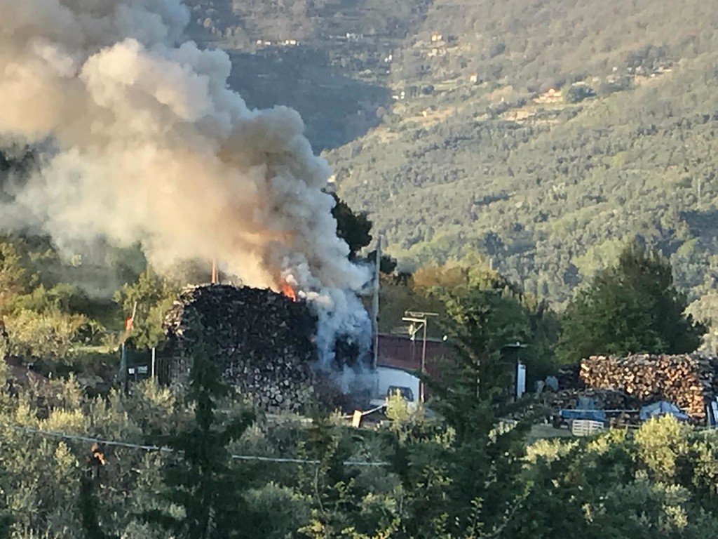 Incendio a Vasia, in fiamme un deposito di legname. Sul posto Vigili del Fuoco e 118 (Foto)