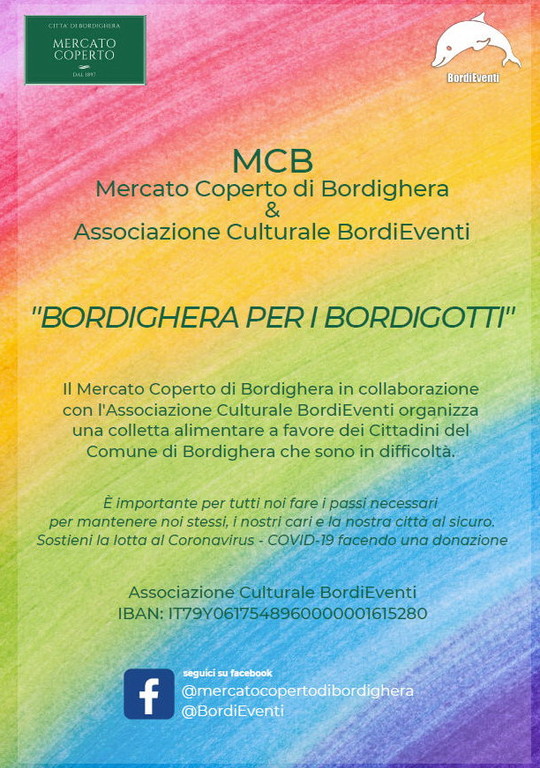 I commercianti del Mercato Coperto di Bordighera, insieme all’associazione culturale ‘BordiEventi’ organizza una colletta alimentare per i residenti della città delle palme che sono in difficoltà.