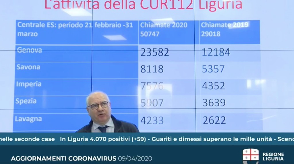 L’assessore alla sanità Sonia Viale, nel suo intervento ha ricordato l’azione delle asl in supporto delle case di riposo per anziani in difficoltà, come il caso di Borgomaro, mentre l’assessore alla protezione civile Giacomo Giampedrone ha parlato dell’arrivo delle mascherine al domicilio dei liguri da domani – ma una fase sperimentale a Spezia è partita oggi – fino al prossimo 23 aprile. Altre mascherine saranno poi disponibili presso farmacie e tabaccai. Al termine della seconda fase si potranno richiedere alle protezioni civili comunali. Per i comuni sotto i 2000 abitanti saranno consegnati direttamente dai comuni tramite la protezione civile. Sono in arrivo inoltre altri 2 milioni di mascherine chirurgiche e 1 milione di ffp2.