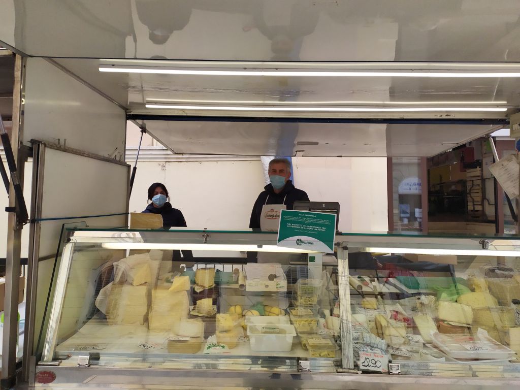 “Gente ce n’è poca – spiega Sandro – perché magari tanta gente non sapeva che ci fossimo, oggi è il primo giorno, siamo molto soddisfatti, non tanto per la vendita, ma perché ricominciamo a vivere, a vedere i clienti, a uscire, a parlare. Siamo stati quasi cinquanta giorni a casa, ci sembra come il nostro primo giorno di lavoro. Al momento vista la situazione lavoriamo con la gente che abita qua vicino, anziani, persone che non hanno la macchina, che fanno la spesa qui vicino. di solito lavoriamo con i turisti”.