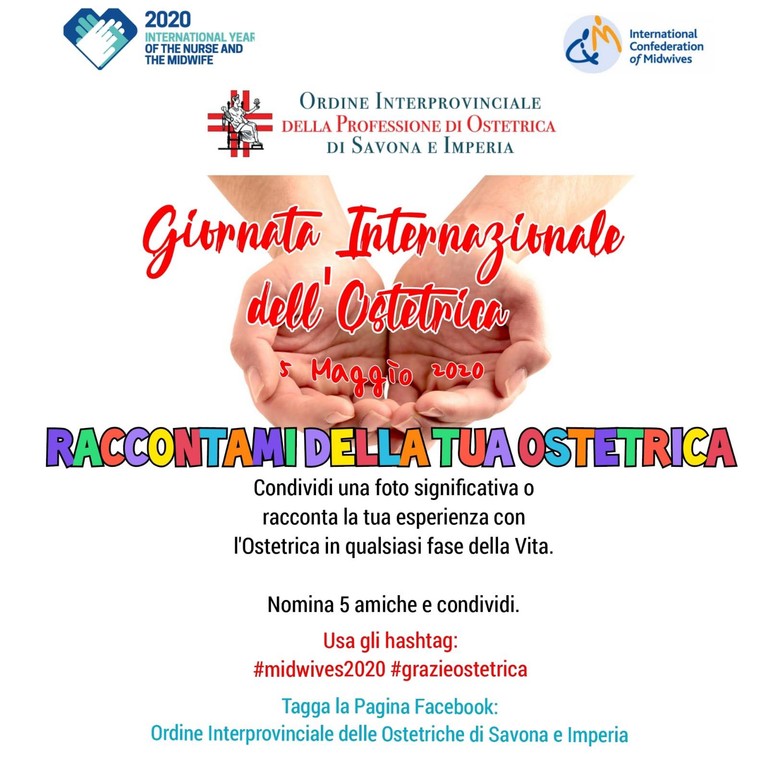 Scrivono le ostetriche di Imperia e Savona: “Chiediamo a tutti voi, e non solo alle donne, di essere attivi già da oggi attraverso una campagna social postando foto o raccontando si social la vostra esperienza con l’ostetrica attraverso gli hashtag #midwives2020 e #grazieostetrica”.