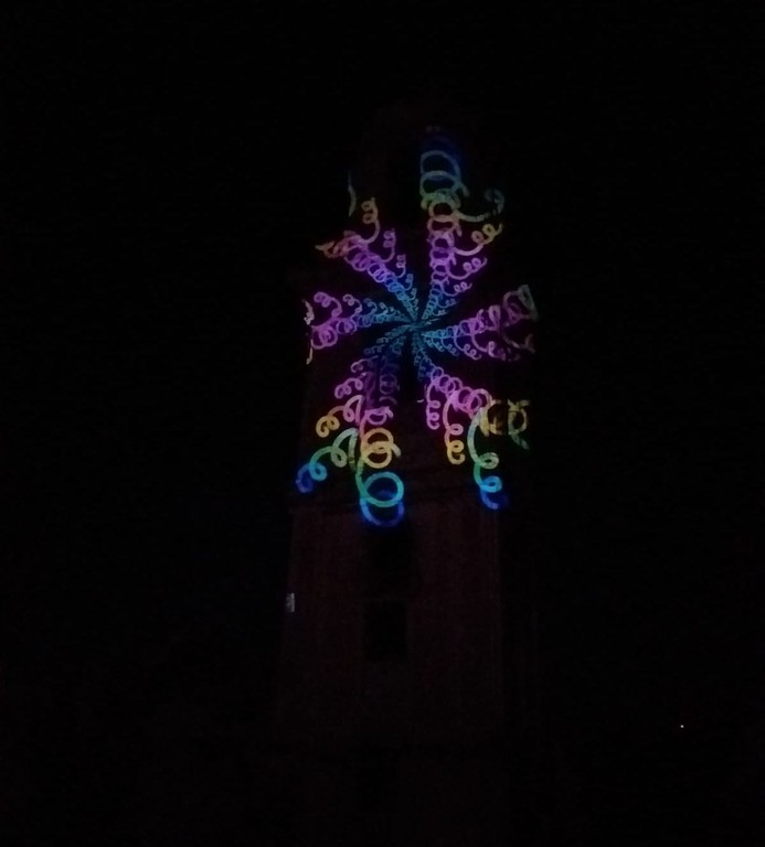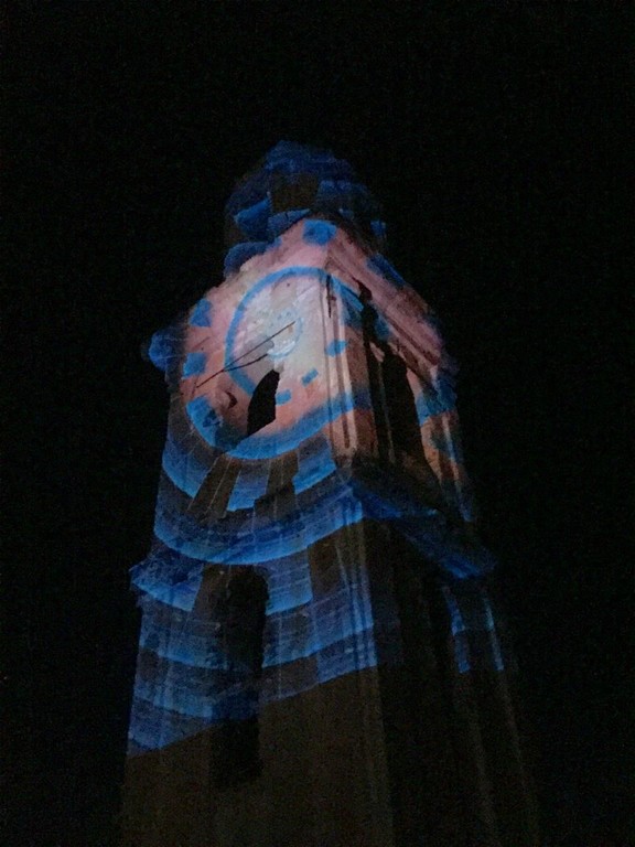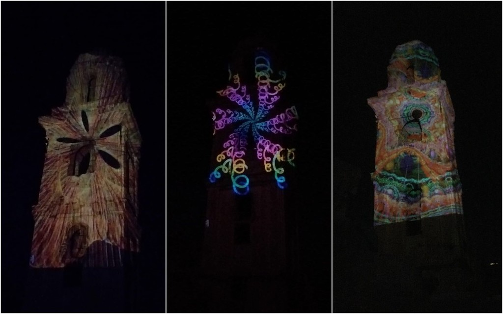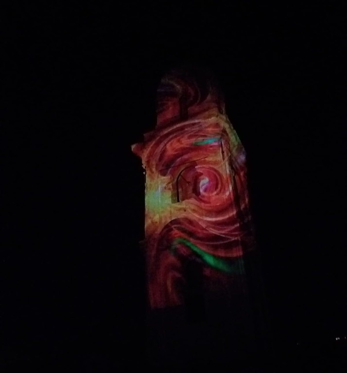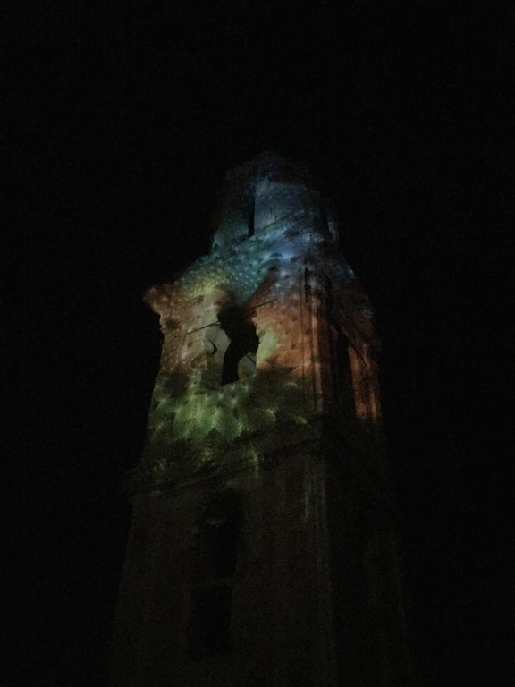 Sulle pareti del campanile dell’antica chiesa sono state proiettate immagini di ogni forma e colore che hanno conferito nuova vita agli intonaci secolari e agli strati petrosi. Quella che normalmente appare come un’algida e severa costruzione in stile barocco, si è animata con proiezioni futuristiche e fantascientifiche, sulla scia di quanto fatto da altri artisti del paese negli anni ’90. La storia si è fusa con la contemporaneità, il rigore architettonico con le nuove tecnologie, dando spazio ad un’ibridazione artistica che ha lasciato gli spettatori dai terrazzi a bocca aperta e naso all’insù.