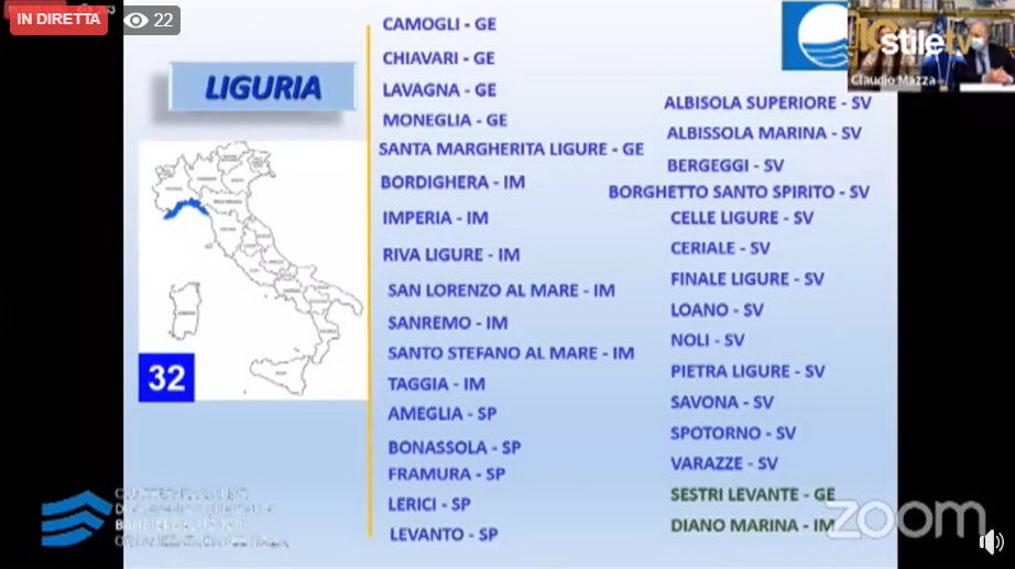 (Sotto l'elenco di comuni e porti che hanno ricevuto la bandiera blu)