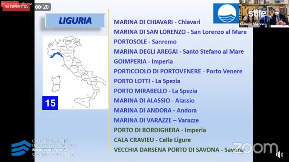 Il vice Sindaco di Diano Marina, Cristiano Za Garibaldi, e l'Assessore all'ambiente, Barbara Feltrin, hanno partecipato oggi in videoconferenza alla cerimonia di assegnazione delle Bandiere Blu 2020, durante la quale è stato assegnato a Diano Marina l'ambitissimo riconoscimento, da tempo atteso. Considerata la complessa situazione a causa dell’emergenza COVID-19, la Conferenza di presentazione delle Bandiere Blu 2020 si è infatti svolta per via telematica.