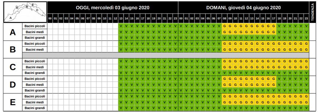 Per il Ponente ed entroterra di Ponente dalle 8 alle 18 di domani giovedì 4 giugno