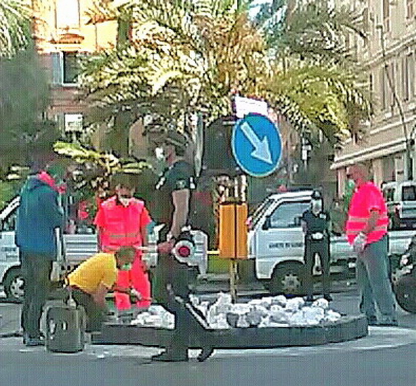 Sanremo: ripristinato già questa mattina lo spartitraffico distrutto ieri notte da un Suv in via Roma