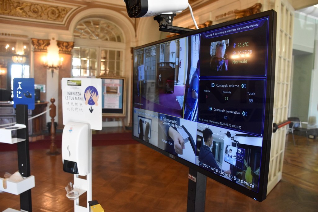 Sono cinque i termo scanner acquistati dal Comune di Sanremo che serviranno per monitorare la temperatura di dipendenti e pubblico. Sono stati installati questa mattina ed abbiamo fatto ‘visita’ a quello sistemato all’ingresso di Palazzo Bellevue.