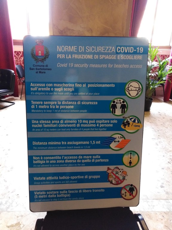 La gestione dell'affollamento sulle ampie spiagge libere di San Bartolomeo al Mare (oltre 17.000 mq di lido pubblico) è particolarmente complessa e richiede uno sforzo da parte di tutti per poter cominciare ad usufruire degli arenili. L’estate ormai imminente avrà infatti come filo conduttore il distanziamento fisico tra le persone.