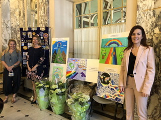 Giovedì 11 finalmente, grazie all’allentamento delle misure restrittive, e grazie al Comune di Sanremo che ha messo a disposizione la Sala Giunta, alla presenza del Sindaco Alberto Biancheri, dell’assessore Costanza Pireri, della Presidente di Circoscrizione Lions Vincenzo Palmero, Presidente anche della CRI , delle referenti E.Lanteri Cravet e G. T. Galletti, dei dirigenti scolastici e delle professoresse Curzia Ferrua e Renata Zanon sono stati premiati ed esposti i disegni prescelti, sempre nel rispetto delle misure di sicurezza indicate dal Decreto Ministeriale.