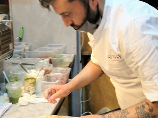 Giovanni è figlio del Vesuvio, nato in una famiglia di ristoratori e fin da ragazzino impegnato a destreggiarsi con farine, impasti, farciture e forno a legna. Dopo una impegnativa gavetta, appena ventenne è diventato un piazzaiolo autentico interprete della pizza napoletana, con grandi riconoscimenti non solo a Napoli, ma in tutto il paese. Dopo diverse e importanti esperienze, superati i 30 anni di età ha deciso ora di aprire un nuovo locale a Sanremo dove vuole sentirsi libero di esprimersi al meglio e senza condizionamenti. Qui non vuole limitarsi a proporre le specialità della tradizione, ma vuole concedersi qualche sperimentazione con uno sguardo rivolto anche alle nuove esigenze dei consumatori ed una attenzione ai prodotti del territorio. Nascono così pizze con fiori e gamberi di Sanremo, con nomi che ricordano le origini dello chef e le migliori produzioni locali.