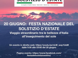 Per molti millenni, in ogni luogo del Mediterraneo e dell'Europa il solstizio estivo è stato l’occasione di grande festa dei popoli, nel momento in cui la natura fiorisce nell’opulenza dei frutti tra il frinire delle solari cicale e il canto lunare dei grilli... un tempo di assoluta positività e di vicinanza alla natura nel suo pieno rigoglio che, lo ricordiamo, quest’anno cade il 20 giugno. In occasione di questo evento domani andrà in onda online la Festa Nazionale del Solstizio d’Estate.