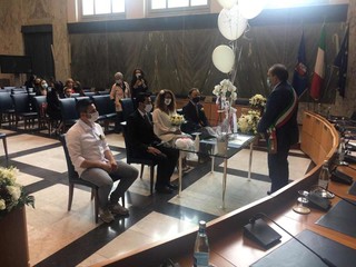 Anche a marzo e ad aprile in comune si sono tenuti altri matrimoni, ma il pubblico era escluso. Oltre agli sposi e al pubblico ufficiale potevano presenziare solo i testimoni. Ieri invece, hanno potuto prendere parte circa 40 persone: questo è infatti, il numero consentito.