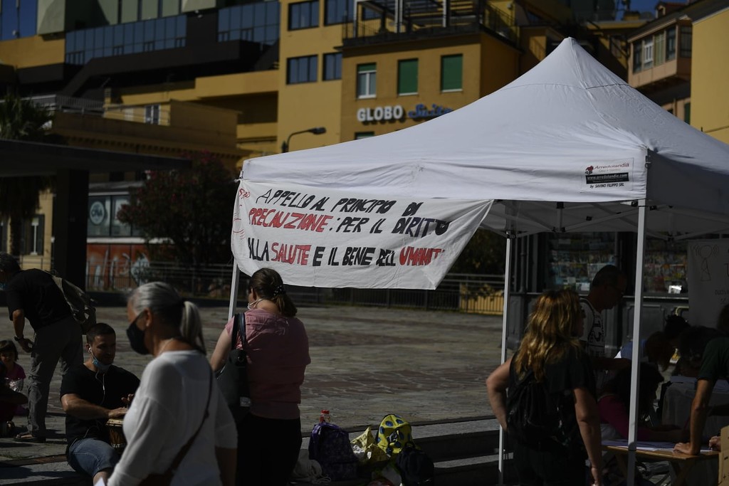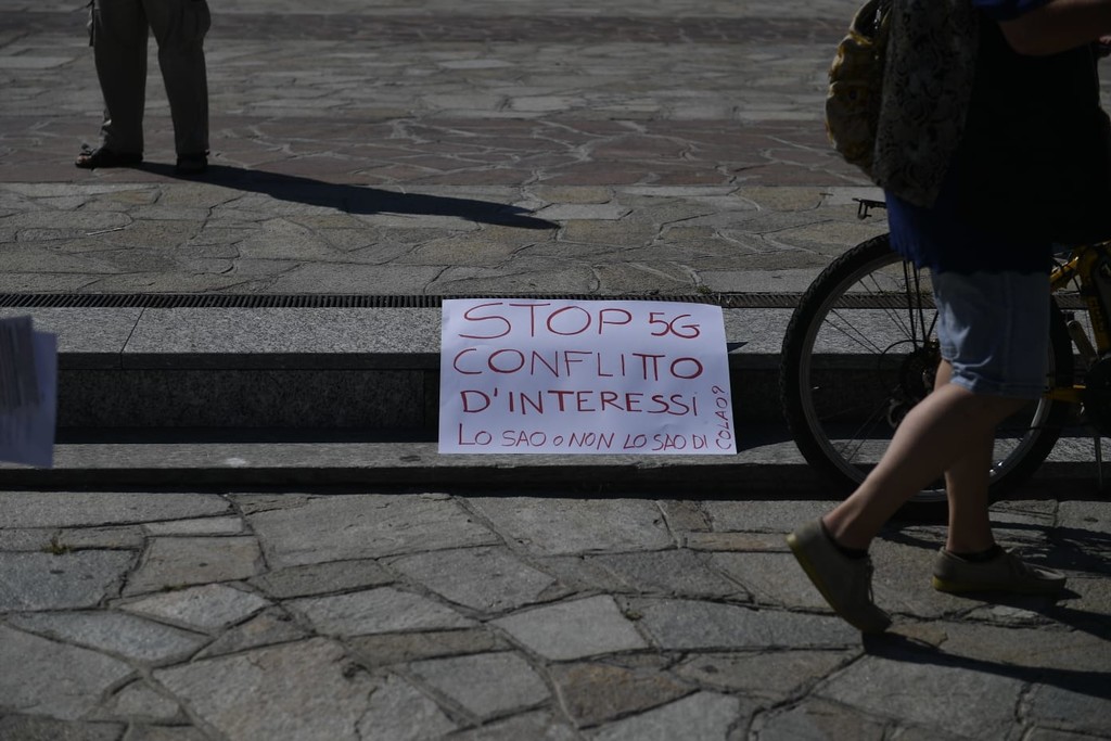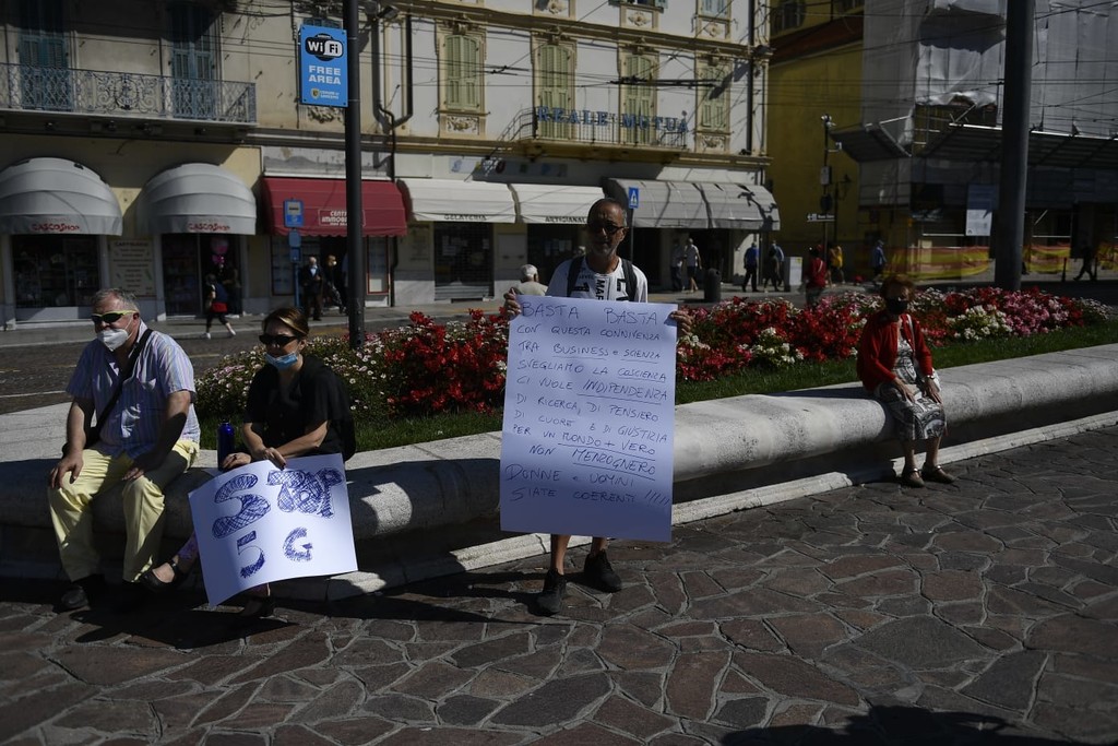 Una ventina di attivisti no 5G si sono radunati questa mattina in piazza Colombo con l'intenzione di provare a convincere i passanti dei rischi che secondo loro sarebbero causati dalle onde della nuova tecnologia.
