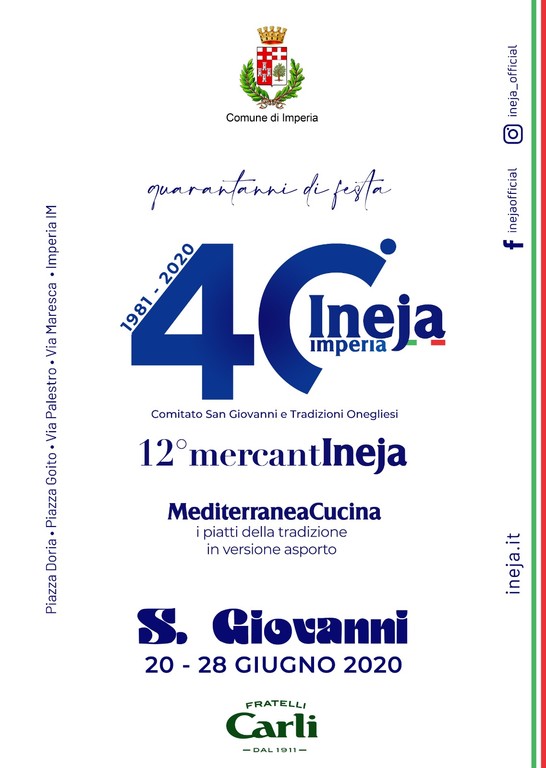 L'evento più importante dell'estate imperiese per il 2020 infatti prevede un “dislocamento” su più zone, tutte nel cuore di Oneglia: piazza Doria, piazza Goito, piazza Maresca e via Palestro.