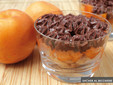 5. Componete la sacher in un bicchiere a vista alternando strati di biscotti frantumati, albicocche cubettate e la mousse di cioccolato (aiutandovi con una sac-a-poche).