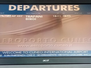 Il giorno della prima percorrenza della nuova tratta Cuneo-Trapani è arrivato. Alle 17,50 di oggi, venerdì 10 luglio, è giunto nello scalo cuneese il primo volo della AlbaStar AP497. Alle 18,55 lo stesso mezzo aereo ripartirà nuovamente e porterà i primi passeggeri da Cuneo nuovamente a Trapani.