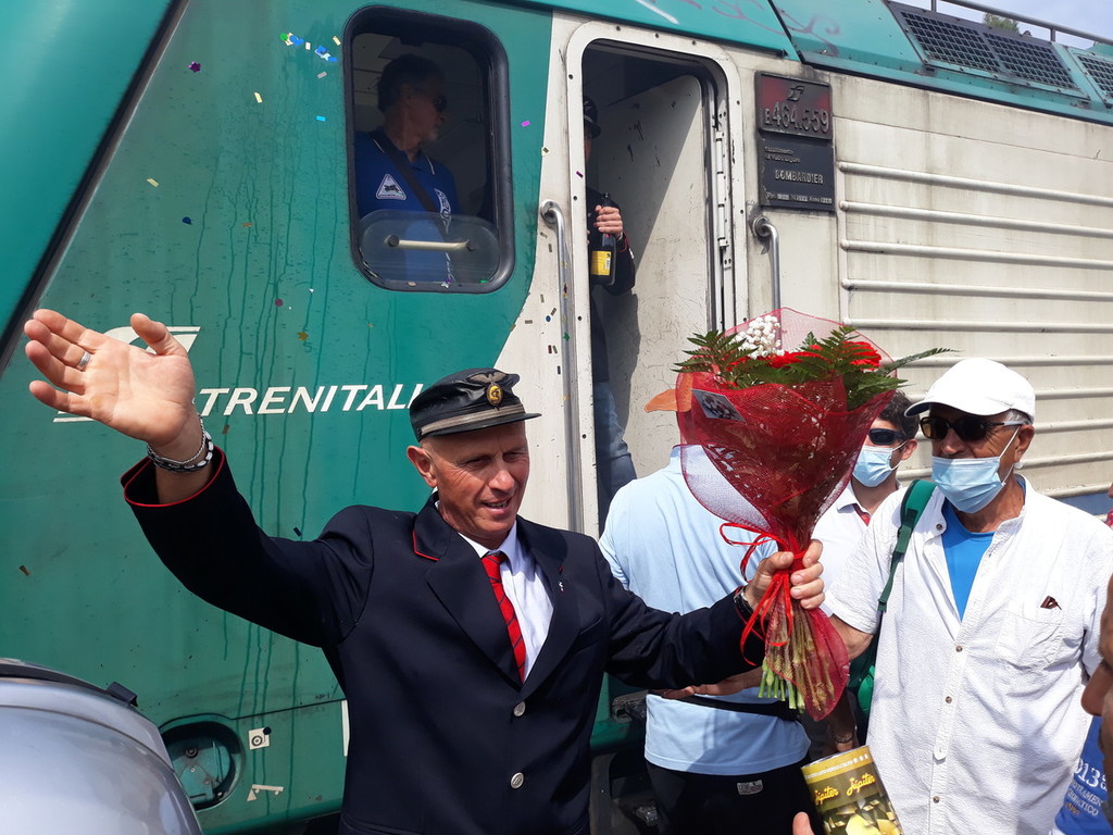 Festa di pensionamento ieri in stazione a Ventimiglia. Flavio Giuliani, ha portato a destinazione l'ultimo treno di una carriera nel mondo delle ferrovie lunga ben 40 anni. Ad attenderlo amici e parenti che gli hanno reso omaggio con una festa. Giuliani è molto conosciuto e negli ultimi anni è stato uno dei principali promotori per la nascita del Museo Nazionale dei Trasporti, sito all'interno della stazione ferroviaria di Taggia.