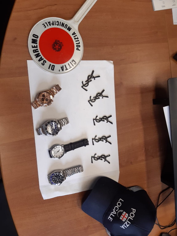 Sanremo: blitz anti contraffazione, sequestrati in un’abitazione di Piazza Nota numerosi articoli tra cui orologi, borse e cinture (foto)