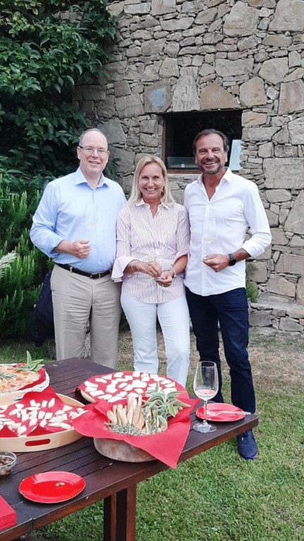 Visita privata sulle alture di Dolceacqua per scoprire il "Rossese di Dolceacqua", per il Principe di Alberto di Monaco con un gruppo di amici, tra i quali Ezio Greggio e la sua compagna Romina Pierdomenico.