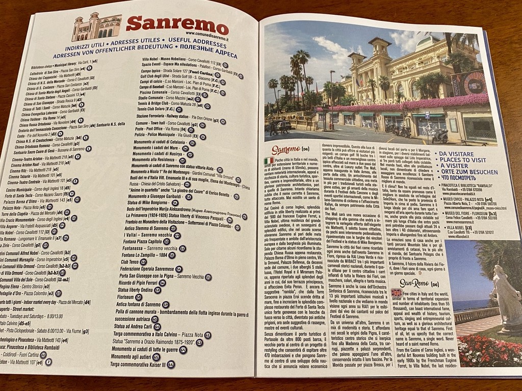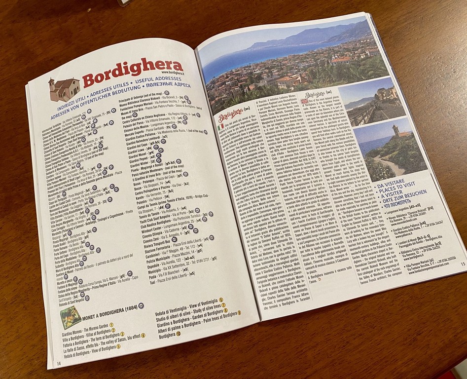 È nata così la guida Riviera dei Fiori, curata dal Consorzio Turistico Riviera dei Fiori con il supporto di Innovation media, in una versione che vede 72 pagine di informazioni sul territorio, scritte in 5 lingue (italiano, francese, inglese, tedesco e russo) che, grazie anche alla collaborazione dei comuni di Ventimiglia, Bordighera, Sanremo, Taggia, Imperia e Diano Marina, riporta una panoramica di quello che la Riviera può offrire a chi la vuole vivere.