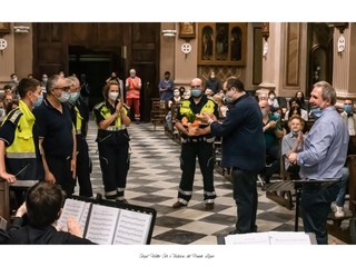 Il parroco ha omaggiato pubblicamente il commissario e i volontari della Croce Rossa di Pontedassio e della Valle Impero, il presidente e i volontari della Protezione Civile Valle Impero Maro Pontedassio e la delegazione degli operatori della Casa di Riposo Opere Pie Agnesi. Anche l’amministrazione comunale, presente al concerto, si è unita ai ringraziamenti.