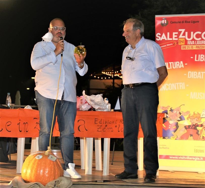 Nel corso della serata presenti anche il Sindaco, Giorgio Giuffra e l’assessore al Turismo e Manifestazioni Francesco Benza si è realizzato un gemellaggio fra i due comuni nel segno della zucca. Se la frazione di Cengio in provincia di Savona può vantare l’importante progetto di recupero di questa cucurbitacea, anche Riva ligure ha una lunga tradizione legata alla zucca, che va dalla preparazione di una deliziosa torta al fatto ricordato dal sindaco che gli abitanti venivano chiamati “lapasucche” proprio per l’importante a presenza di questo ortaggio nelle coltivazioni e nella cucina popolare.