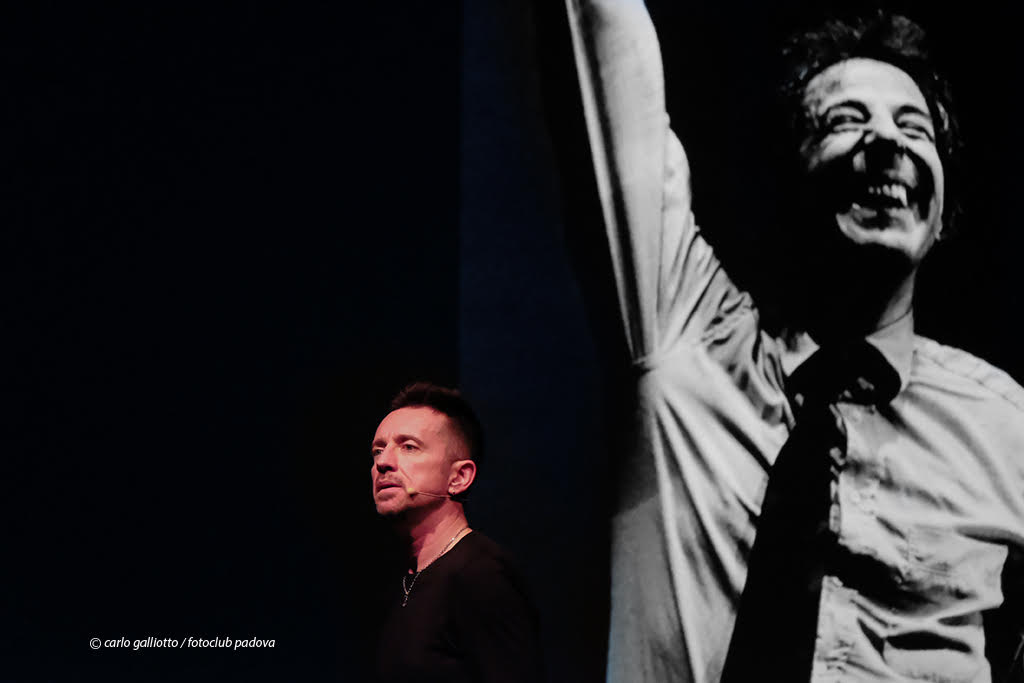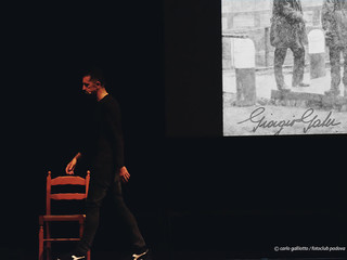Un’ora e trenta di spettacolo che si articola in una narrazione e video proiettati sul maxischermo con le esecuzioni di Gaber. La regia e la direzione di scena sono di Simone Rota.
